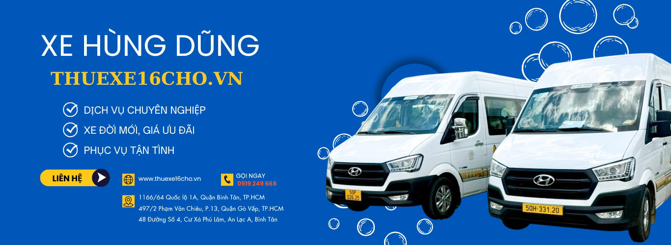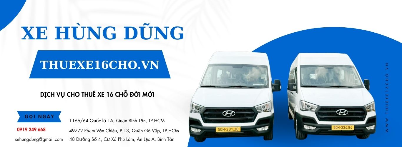 Xe Hùng Dũng chuyên cho thuê xe du lịch 16 chỗ tại TP. Hồ Chí Minh. Chúng tôi có đội ngũ tài xế chuyên nghiệp và số lượng các loại xe du lịch đời mới có thể đáp ứng được mọi nhu cầu đa dạng của thị trường với chất lượng phục vụ tốt nhất. Chúng tôi cho thuê xe 16 chỗ với các dòng xe sau: